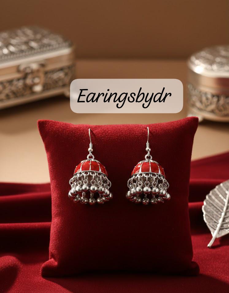 Red shade Silver Metal jhumki style earingRed shade Silver Metal jhumki style earing